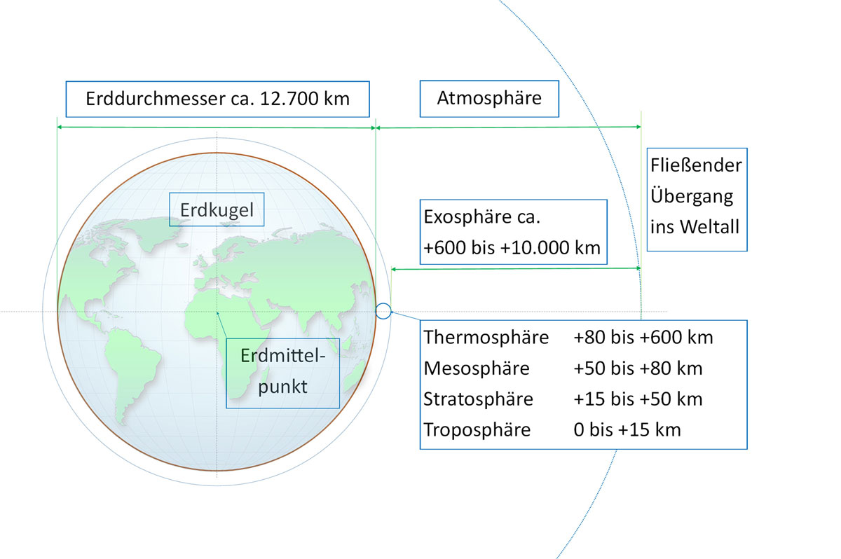 Berücksichtigt man die realen Größenverhältnisse, ergibt sich für die gesamte Atmosphäre folgendes Bild: