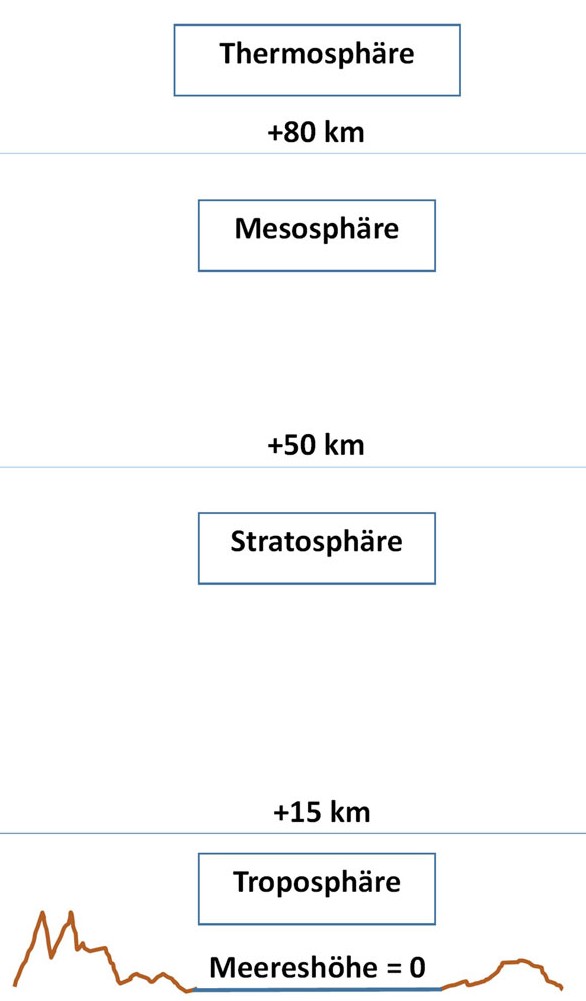 Wichtig: Fast alle für das Leben relevanten atmosphärischen Prozesse spielen sich in der Troposphäre ab.