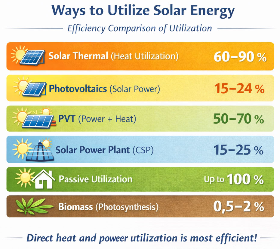 👉 From a physical standpoint, solar thermal is the most efficient use of solar energy